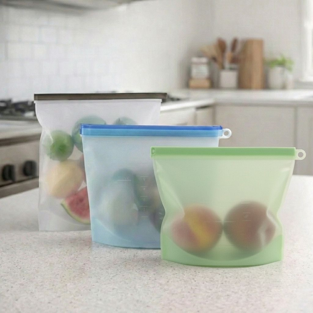 وداعًا للبلاستيك أحادي الاستخدام! 🌍 مجموعة أكياس السيليكون القابلة لإعادة الاستخدام هذه (1000 مل، 1500 مل، 2000 مل) بسحابات محكمة تحافظ على طعامك طازجًا وصديقًا للبيئة في مطبخك. مثالية للوجبات الخفيفة والوجبات الرئيسية وبقايا الطعام - متينة، مانعة للتسرب، آمنة للاستخدام في الميكروويف والمجمد!